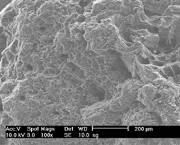 市販されている活性炭と「ブラックホール」の表面形状を比較してみました。(倍率 100倍)