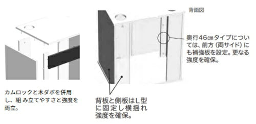 外観デザインを一新し、耐荷量・耐震性も両立。 全種にカムロックを採用する事で表面にネジが見えず美しい仕上がりに。
