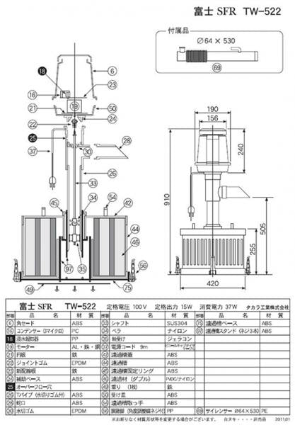 タカラ ウォータークリーナー 富士SR・SFR 濾過槽部分(濾材付き) TW-521-2R TW-522-2R 会社は送料無料(一部地域除) 同梱不可 個人宅宛送料2200円(北海道沖縄離島は送料3300円~)