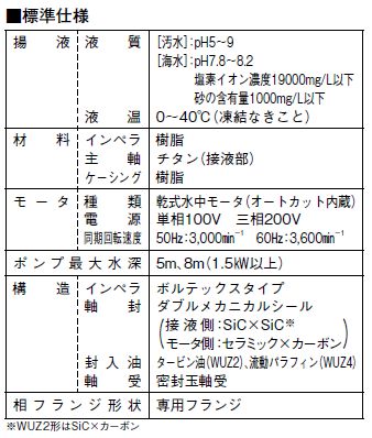 川本ポンプ カワホープ WUZ2-806-3.7 三相200V 60Hz 非自動型 海水用チタン製水中ポンプ 代引不可 同梱不可 送料無料 北海道・沖縄・離島は別途